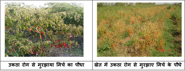 मिर्च का उकठा एक गंभीर मृदा जनित रोग है, जो फ्यूजेरियम ऑक्सीस्पोरम नामक फफूंद के कारण होता है। यह रोग पौधों की जड़ों एवं संवहनी ऊतकों को प्रभावित करता है, जिससे पौधे धीरे-धीरे मुरझाकर सूख जाते हैं।