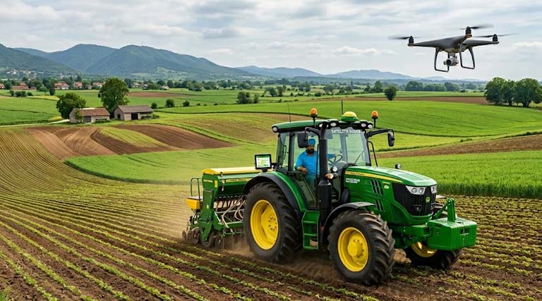 - GPS: इसकी मदद से ट्रैक्टर और मशीनों को सटीक दिशा दी जाती है ताकि कोई जगह छूटे नहीं।