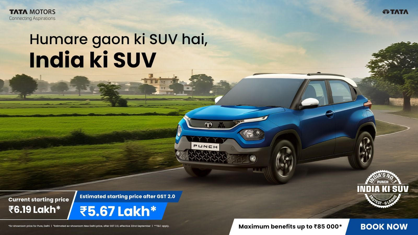 भारत की पहली ट्विन-सिलिंडर आईसीएनजी एसयूवी होने के साथ यह कार स्पेस, परफॉर्मेंस और किफ़ायत, तीनों का बेहतरीन मेल पेश करती है। देशभर में लोकप्रिय: पंच की लोकप्रियता सिर्फ बड़े शहरों तक सीमित नहीं है। इसके ग्राहक टियर2 1 (24%), टियर 2 (47%) और टियर 3 (29%) शहरों से हैं, जो इसकी देशभर में बढ़ती स्वीकार्यता और भरोसे को दर्शाता है। 6 लाख से अधिक संतुष्ट ग्राहकों के साथ, टाटा पंच न केवल पूरे भारत में कार खरीदारों की पसंद बन गई है, बल्कि टाटा मोटर्स की मार्केट लीडरशिप को भी लगातार मज़बूती दे रही है।