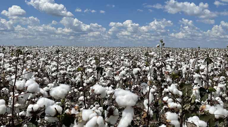 वर्ष 2023–24 में कपास की खेती लगभग 114.47 लाख हेक्टेयर क्षेत्र में की गई, जबकि उत्पादन का अनुमान 325.22 लाख गांठ रहा, जो वैश्विक उत्पादन का लगभग 25 प्रतिशत है। कपास के लिए एमएसपी का निर्धारण कृषि लागत एवं मूल्य आयोग (सीएसीपी) की सिफारिशों के आधार पर किया जाता है।