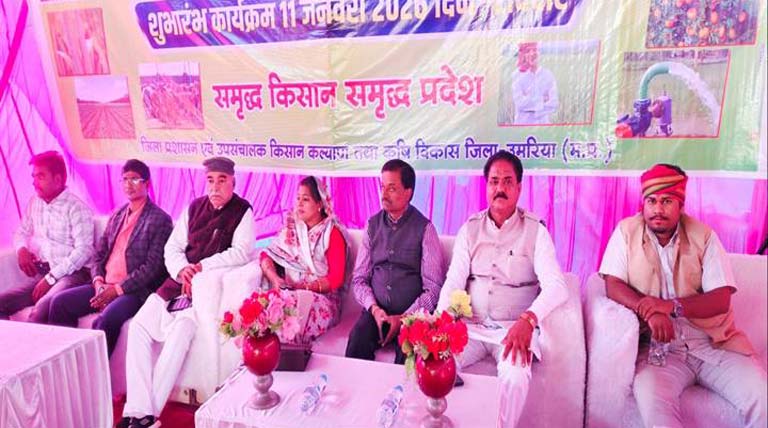 14 जनवरी 2026, उमरिया: उमरिया में कृषक कल्याण वर्ष कार्यक्रम आयोजित किया – कृषि उपज मंडी उमरिया में गत दिनों कृषक कल्याण वर्ष कार्यक्रम आयोजित किया गया। जिसमें जिला पंचायत अध्यक्ष अनुजा पटेल,कलेक्टर कलेक्टर धरणेन्द्र कुमार जैन , उप संचालक कृषि श्री संग्राम सिंह सहित बड़ी संख्या में किसान मौजूद थे।