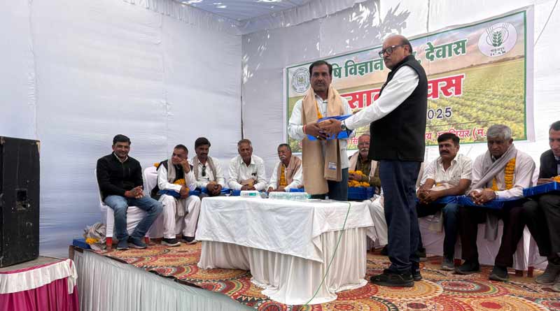 24 दिसंबर 2025, देवास: केवीके देवास में कृषक दिवस एवं कृषक सम्मान समारोह आयोजित – कृषि विज्ञान केन्द्र, देवास में भारत रत्न ,पूर्व प्रधानमंत्री श्री चौधरी चरण सिंह के 123वें जन्मदिन ( 23 दिसंबर ) के उपलक्ष्य में उन्नतशील कृषकों का सम्मान समारोह एवं कृषक दिवस का आयोजन किया गया। जिसमें देवास जिले के विभिन्न गांवों के 18 कृषकों को केन्द्र के प्रधान वैज्ञानिक एवं प्रमुख डॉ. आर.पी.शर्मा द्वारा शाल , श्रीफल एवं स्मृति चिन्ह भेंट कर सम्मानित किया गया।