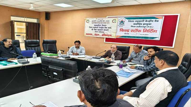 25 दिसंबर 2025, आलीराजपुर: आलीराजपुर में रबी ऋण वितरण व वसूली की हुई समीक्षा – जिला सहकारी बैंक झाबुआ एवं जिला आलीराजपुर के फील्ड स्टाफ की संयुक्त बैठक जिला सहकारी बैंक के नवनियुक्त मुख्य कार्यपालन अधिकारी श्री आरजू इकबाल खान की अध्यक्षता में संपन्न हुईं। इस दौरान उन्होंने जिले की 26 सहकारी समितियों की रबी ऋण वितरण, ऋण वसूली एवं ईआरपी एंट्री की विस्तृत समीक्षा की गई।