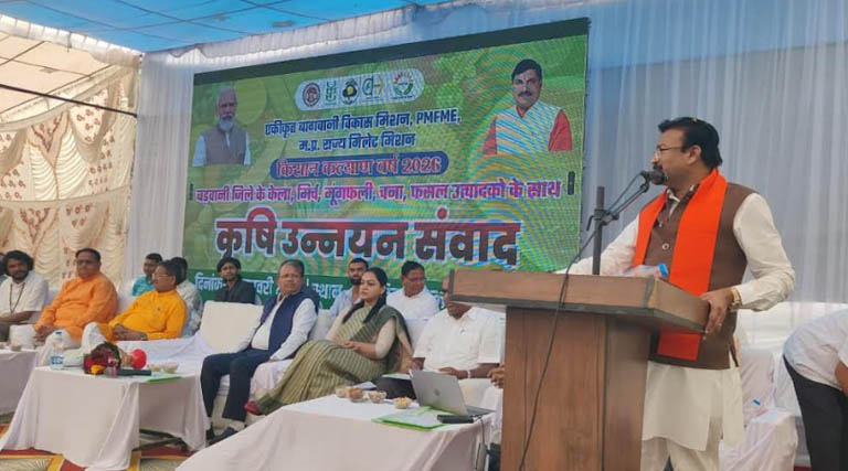 18 फरवरी 2026, इंदौर / बड़वानी: बड़वानी में कृषि उन्नयन के लिए आयोजित हुई कृषि संगोष्ठी – प्रदेश शासन द्वारा वर्ष 2026 को कृषि कल्याण वर्ष घोषित किया गया है। इसके लिए इंदौर संभाग के बड़वानी में एक्जोटिक फसलों और केले के एक्सपोर्ट हब के रूप में विकसित करने के उद्देश्य से एक दिवसीय कृषि उन्नयन संवाद आयोजित किया गया। इस संवाद कार्यक्रम में अंतर्राष्ट्रीय कृषि विशेषज्ञों, निर्यातकों और प्रगतिशील किसानों सहित बड़ी संख्या में जिले के प्रेक्षक सम्मिलित हुए, जहाँ जिले के केले को वैश्विक मानकों पर खरा उतारने के लिए विशेषज्ञों ने अपने अनुभव साझा किए। अंतर्राष्ट्रीय विशेषज्ञों की उपस्थिति में किसानों को आधुनिक खेती और वैश्विक बाजार से जुड़ने की रणनीतियां बताई गई।
