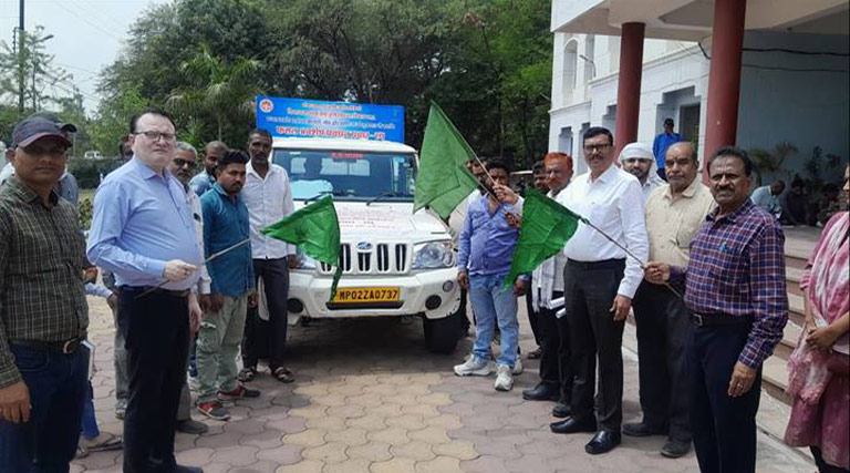 देवास में नरवाई प्रबंधन हेतु जागरूकता रथ को दिखाई हरी झंडी