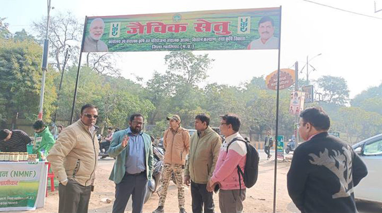 14 जनवरी 2026, ग्वालियर: जैविक हाट से ग्वालियर वासियों के साथ कृषक भी गदगद – जैविक हाट में रसायन मुक्त अनाज, फल, सब्जियां व अन्य उत्पाद पाकर खुश हैं तो प्राकृतिक (जैविक) खाद्यान्न उत्पादक किसान भी अच्छी बिक्री से गदगद हैं।