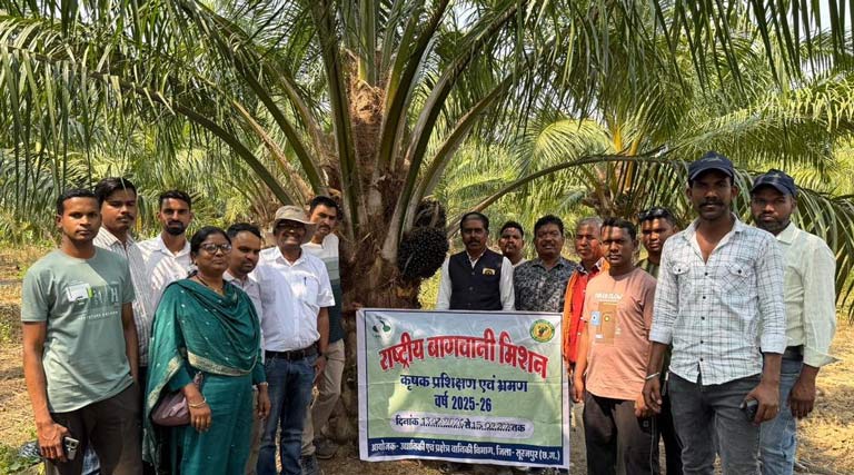 17 फरवरी 2026, रायपुर: ओडिशा में ऑयल पाम का मॉडल देख छत्तीसगढ़ के किसान हुए प्रेरित, अब प्रति एकड़ 2 लाख तक की कर रहे कमाई – कार्यक्रम नुआपाड़ा जिला के खरियार रोड स्थित बेलटुकरी ग्राम में प्रगतिशील कृषक लक्ष्मी चंद्राकर के प्रक्षेत्र पर आयोजित कराया गया। कार्यक्रम का उद्देश्य किसानों को ऑयल पाम उत्पादन की उन्नत तकनीकों से अवगत कराना तथा आधुनिक एवं लाभकारी कृषि पद्धतियों को अपनाने के लिए प्रेरित करना है।