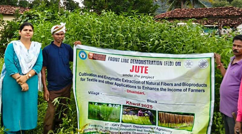 इंदिरा गांधी कृषि विश्वविद्यालय के निदेशक (विस्तार सेवाएं) डॉ. एस.एस. टुटेजा के मार्गदर्शन में केवीके धमतरी के प्रमुख डॉ. ईश्वर सिंह, वैज्ञानिक डॉ. दीपिका चंद्रवंशी और डॉ. प्रेम लाल साहू की टीम ने किसानों को जूट की खेती के लिए प्रेरित किया। हाल ही में विश्वविद्यालय की वैज्ञानिक डॉ. प्रज्ञा पांडे और डॉ. प्रेम लाल साहू ने किसानों के खेतों का निरीक्षण किया और तैयार फसल का मूल्यांकन किया।