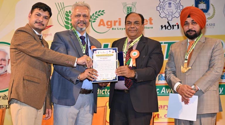 26 फरवरी 2026, चंडीगढ़: डॉ. दीक्षित को लाइफटाइम एकेडमिक लीडरशिप अवार्ड – डॉ. अनिल दीक्षित, संयुक्त निदेशक, राष्ट्रीय जैविक स्ट्रेस प्रबंधन संस्थान को गत दिनों आयोजित AGRIMMET 2026 के समापन समारोह में “लाइफटाइम एकेडमिक लीडरशिप अवार्ड” से सम्मानित किया गया। सम्मेलन का आयोजन एग्री मीट फाउंडेशन भारत द्वारा किया गया। समारोह के मुख्य अतिथि डॉ. धीर सिंह, निदेशक-सह-कुलपति, राष्ट्रीय डेयरी अनुसंधान संस्थान, करनाल रहे। इस अवसर पर पंजाब क्षेत्र के विभिन्न विश्वविद्यालयों के कुलपति, वरिष्ठ वैज्ञानिक तथा लगभग 400 प्रतिभागी उपस्थित रहे।