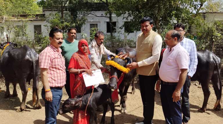 मध्यप्रदेश: मुख्यमंत्री दुधारू पशु प्रदाय योजना के तहत गुना के 11 किसानों को मिली मुर्रा भैंस
