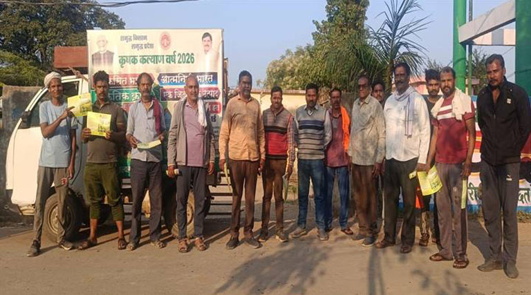 14 फरवरी 2026, नरसिंहपुर: नरसिंहपुर: कृषि रथ से दी जा रही आधुनिक कृषि तकनीक की जानकारी – राज्य शासन के निर्देशानुसार किसान कल्याण वर्ष 2026 के अंतर्गत जिले के सभी 6 विकासखंडों में कृषि रथ का संचालन किया जा रहा है। कृषि रथ के माध्यम से जिले के किसानों को ई-विकास प्रणाली (ई-टोकन उर्वरक वितरण), आधुनिक कृषि यंत्रों, उन्नत एवं वैज्ञानिक खेती पद्धतियों की जानकारी दी जा रही है। कृषि विभाग द्वारा कृषि रथ के माध्यम से किसानों को जागरूक किया जा रहा है।