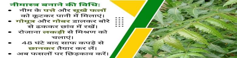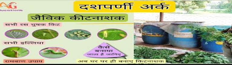 दशपर्णी बनाने की विधि: सामग्री:1. 10 प्रकार के पत्ते (दशपर्णी के लिए उपयुक्त पत्ते जैसे कि नीम, करंज, आक, आदि)2. गोमूत्र (10 लीटर)3. गोबर (2 किग्रा)4. बेसन (1 किग्रा) 5. गुड़ (1 किग्रा) विधि:1. 10 प्रकार के पत्तों को इकट्ठा करें और उन्हें पानी में उबालकर एक घोल बनाएं। 2. इस घोल को ठंडा करके गोमूत्र, गोबर, बेसन और गुड़ मिलाएं। 3. मिश्रण को 24-48 घंटे तक रखकर दशपर्णी तैयार करें।4. मिश्रण को छानकर तरल रूप में उपयोग करें।उपयोग:1. दशपर्णी को कीटनाशक और फफूंदनाशक के रूप में उपयोग करें। 2. यह पौधों को कीटों और बीमारियों से बचाता है। फायदे: 1. दशपर्णी एक प्राकृतिक और जैविक कीटनाशक है।2. यह पर्यावरण के लिए सुरक्षित है और पौधों की वृद्धि में सुधार करता है। किसान भाईयों को स्थानीय जलवायु के अनुकूल आनुवांशिक एवं भौतिक रूप से शु़द्ध एवं कीट व्याधि से मुक्त गुणवत्तायुक्त प्रमाणित बीजों का प्रयोग करना चाहिए जिससे खेती में लागत कम हो एवं आदानों जैसे सिंचाई खाद इत्यादि का समुचित प्रयोग हो सके एवं उत्पादकता बढ़ाई जा सके एवं खेती में किसान का शुद्ध लाभ बढ़ाया जा सके।