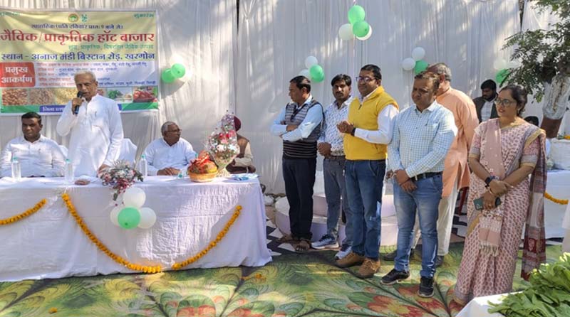 02 जनवरी 2026, खंडवा: जैविक एवं प्राकृतिक हाट बाजार किसानों का मंच – राष्ट्रीय प्राकृतिक खेती मिशन के अंतर्गत जिले में जैविक एवं प्राकृतिक खेती को प्रोत्साहित करने की दिशा मे पुरानी अनाज मंडी प्रांगण में प्रत्येक रविवार को बाजार प्रारंभ किया है। इसका शुभारंभ विधायक श्रीमती कंचन मुकेश तनवे , महापौर श्रीमती अमृता अमर यादव एवं अपर कलेक्टर श्रीमती सृष्टि देशमुख गौड़ा ने फीता काटकर किया ।
