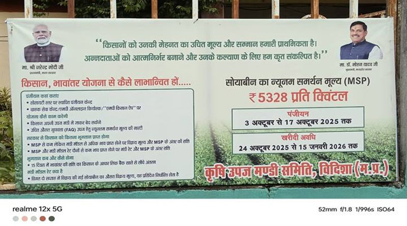 विदिशा में भावांतर योजना के तहत सोयाबीन पंजीयन शुरू, पहले दिन 353 किसानों ने कराया रजिस्ट्रेशन